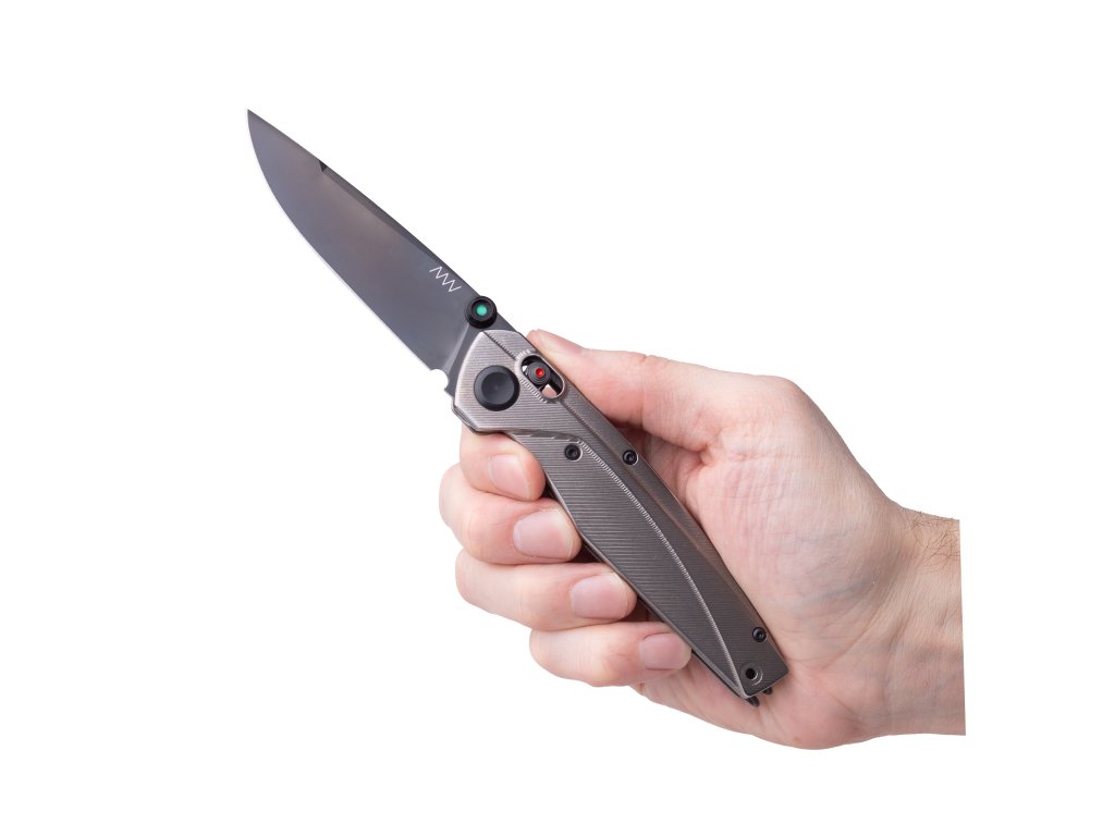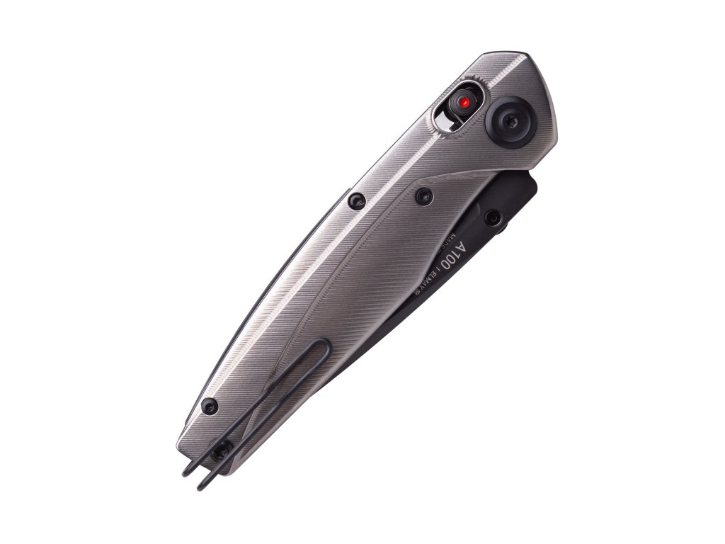 La poignée en titane est façonnée avec précision pour offrir une excellente prise en main tout en conservant une allure élégante et technique. Sa construction apporte au couteau une grande stabilité, prolonge sa durée de vie et souligne le caractère premium de l’ensemble. A100 TI est la combinaison parfaite d’un matériau moderne, d’une haute durabilité et d’un minimalisme fonctionnel.
