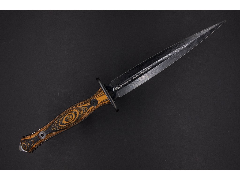 Édition limitée du modèle M500 dans une nouvelle version. Les plaquettes de manche fraisées en G10, dans une combinaison noir-orange, rendent chaque pièce visuellement unique. La lame est fabriquée en acier damassé inoxydable Damasteel Vinland, qui offre une grande durabilité et d'excellentes performances de coupe, avec un motif distinctif.